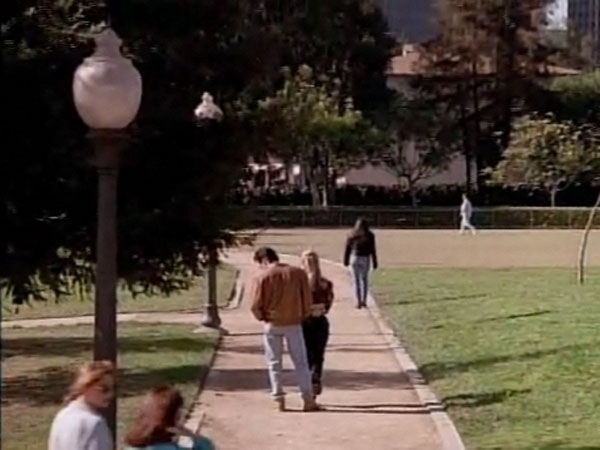 Note: The spot where they shot the scene is visible from Olympic Blvd...not Roxbury Dr. This location was also used for Brandon's Baseball Diamond in season one.