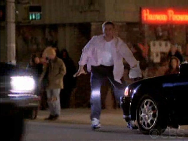 This is the street corner where Matt and Sam pass out flyers looking for his niece Chelsea in the season five episode "From Here to Maternity" Corner of Ventura Blvd and Sunnyslope Ave, Sherman Oaks CA