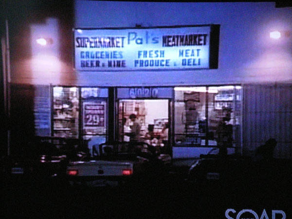 This is the convenience store where the gang goes to exchange an egg to get directions to the rave. Pat's Market, 6020 Kester Ave, Van Nuys CA